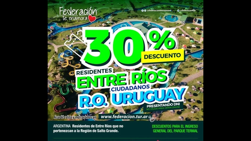 Si eres entrerriano o resides en cualquier parte del Uruguay, puedes ahorrar un 30% en tu entrada.
